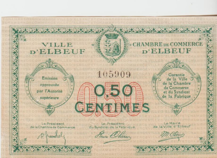 Prodam ZELO REDEK bankovec 50 CENTIMES (FRANCIJA d ELBEUF)1920,XF++/aUNC Kvaliteta.