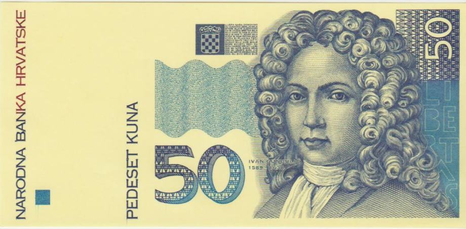 Prodam ZELO REDEK TESTNI BANKOVEC 50 KUNA P31p (HRVAŠKA) 31.10.1993, UNC kvaliteta."Tiskar:Giesecke & Devrient (Nemčija) - G&D