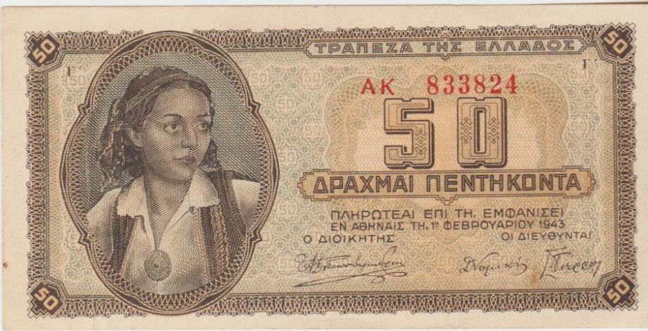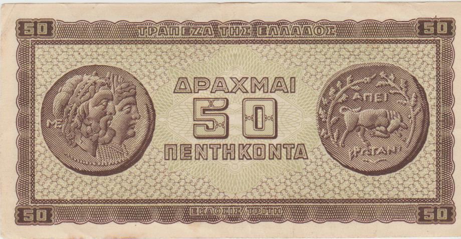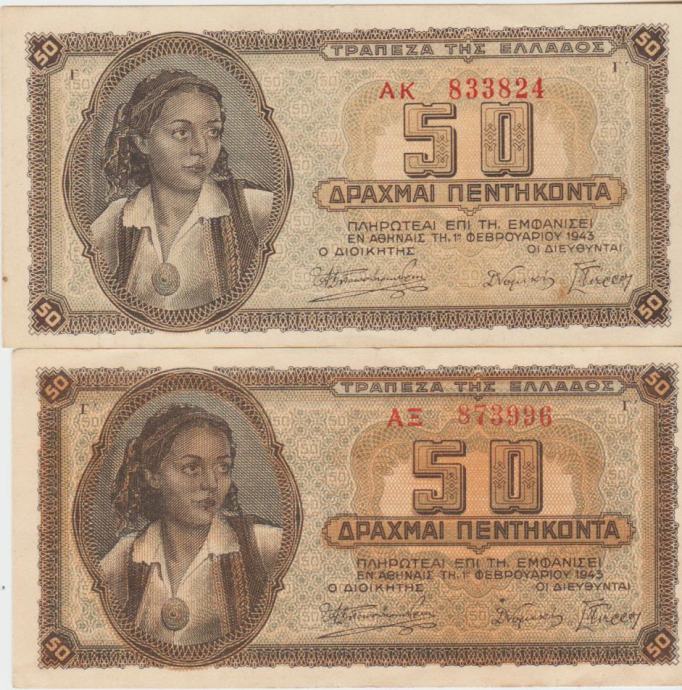 Prodam REDEK BANKOVEC 50 DRACHMAI P-121 (GRČIJA ) – 1943.XF/aUNC Kvaliteta.CENA JE ZA 1 BANKOVEC.