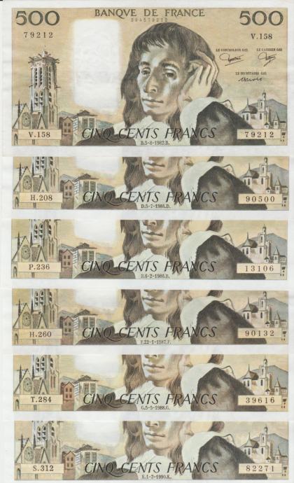 BANKOVEC 500-1982,1984,1986,87,88,90 FRANCS"PASCAL(FRANCIJA) XF++/aUNC