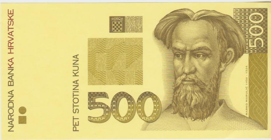 BANKOVEC 500 KUNA P34a.2 "Marko Marulić" (HRVAŠKA) 31.10.1993,UNC