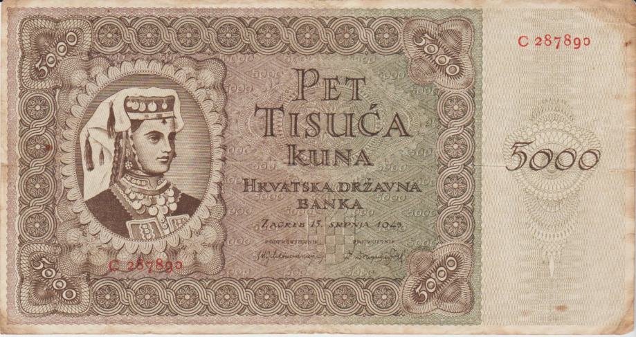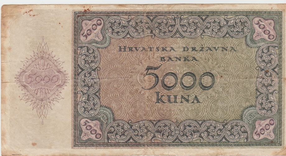 Prodam REDEK bankovec 5000 KUNA-P14a (NDH Hrvaška ) 1943,VF kvaliteta.