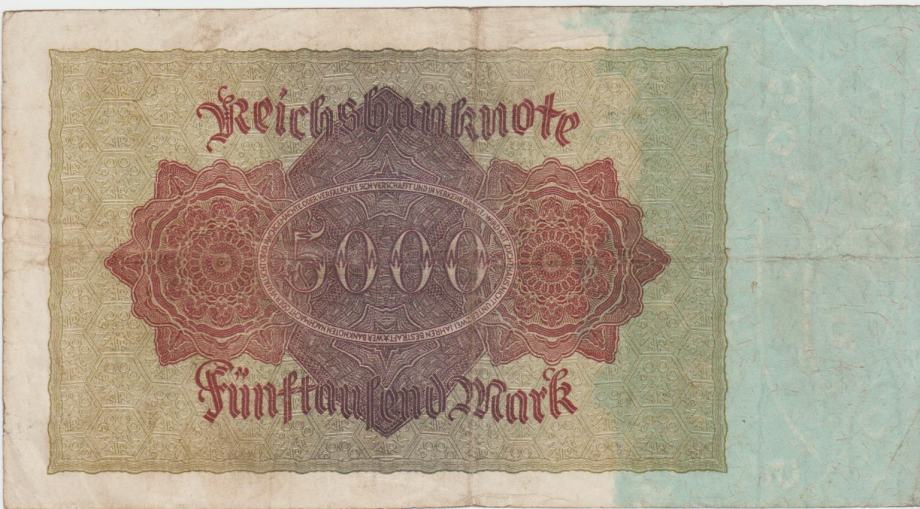 Prodam VELIK BANKOVEC (198 x 107 mm) 5000 MARK P78 (NEMŠKI REIH NEMČIJA). 1922.VF kvaliteta.
