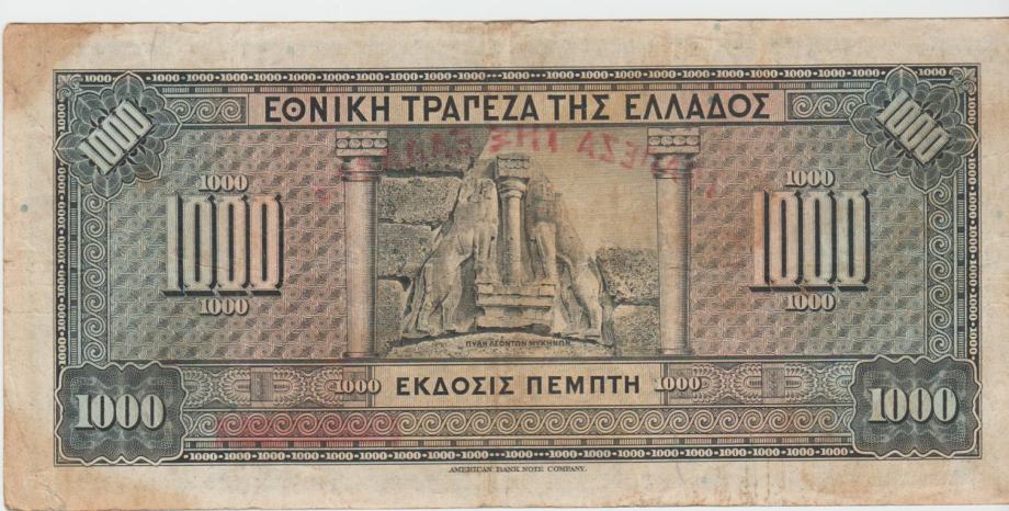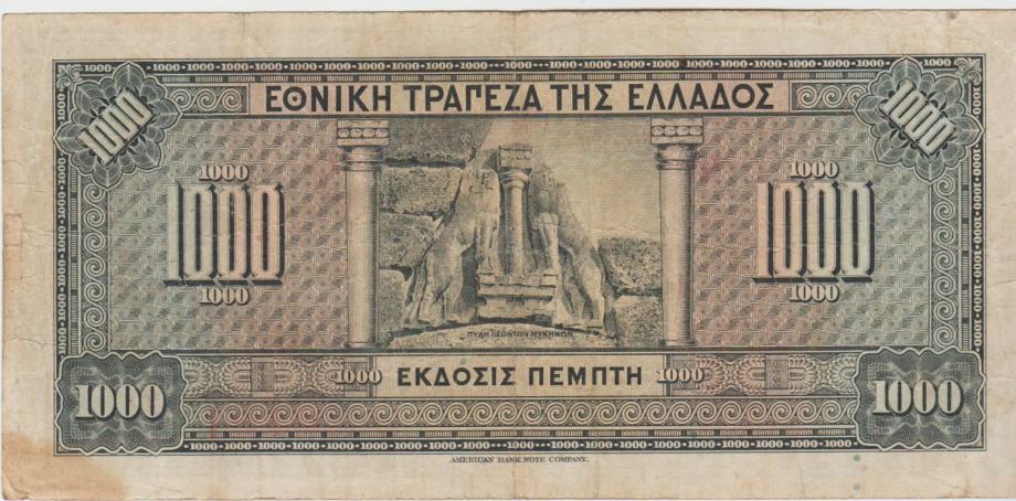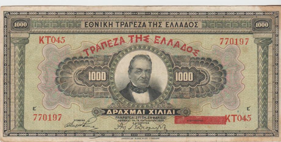 BANKOVEC 1000 DRACHMA redek P100a !! PRETISK (GRČIJA )15.10.1926. VF