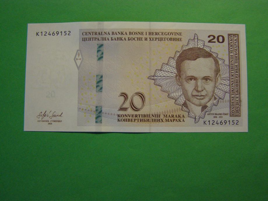 Prodam bankovec za 20 konvertibilnih mark (20 BAM) iz Bosne in Hercegovine, kot ga lahko vidite na fotografijah. Gre za izdajo "Federacije Bosne in Hercegovine" in je povsem nov - UNC kvalitete.