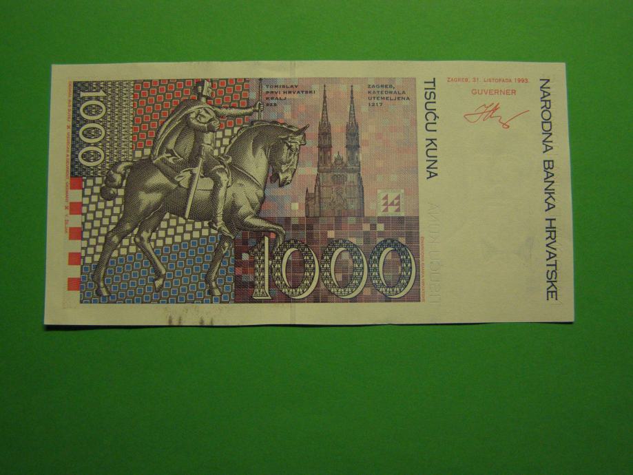 Prodam bankovec za 1000 Kun iz Hrvaške (1000 HRK), kot ga lahko vidite na fotografijah in je povsem nov, UNC kvalitete.
