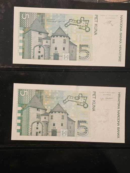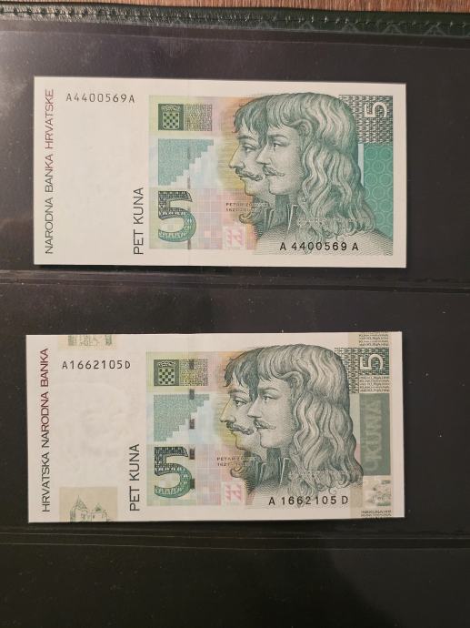 Prodam 2 bankovca za 5 kun 1993 in 2001 letnik v UNC kvaliteti.