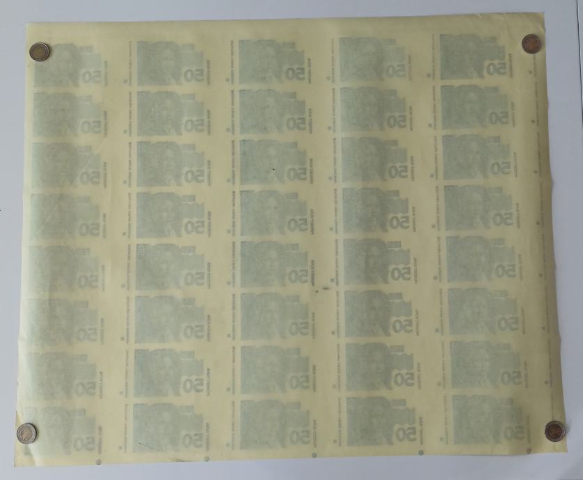 Prodam testni tisk bankovcev za 50 kun nerazrezan