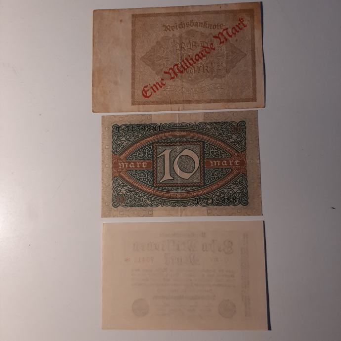 Lot starih bankovcev, reichsmark iz leta 1920, 1922 in 1923. Ohranjene.