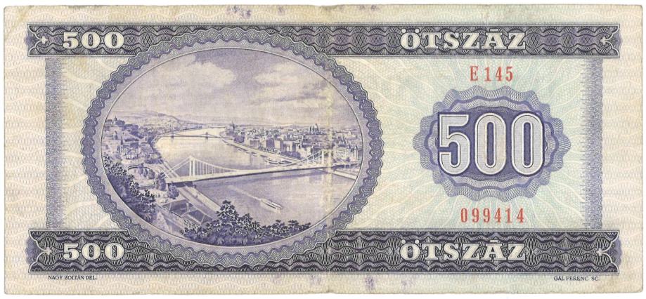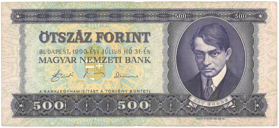 Prodam bankovec na fotografiji: Madžarska 500 forint 31. 7.1990