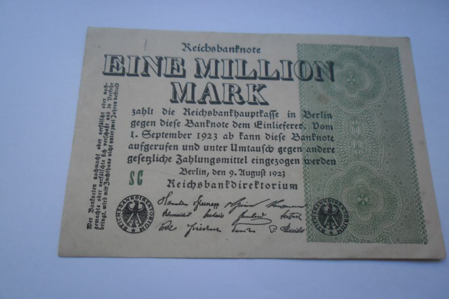 NEMČIJA 1 000 000 REICHMARK 1923 ENOSTRANSKI BANKOVEC