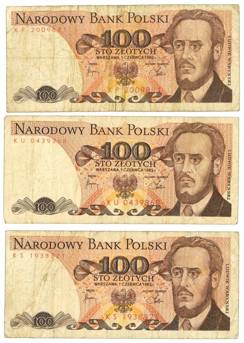 Prodam bankovce na fotografiji; Poljska 100 zlotov, 1982, serije KU, KP in KS. Cena je za vse tri bankovce !