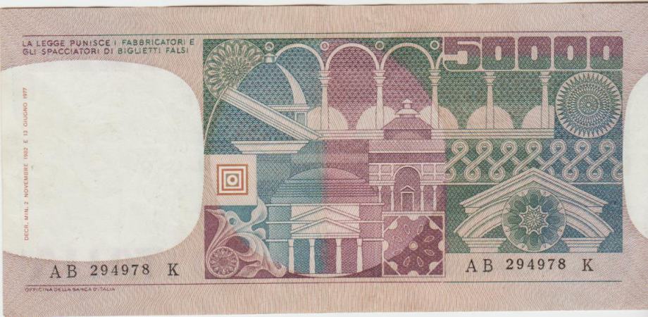 Prodam ZELO REDEK BANKOVEC 50.000 LIRE P107c (ITALIJA ) 11.4.1980(1977).XF kvaliteta. CENA JE ZA 1 BANKOVEC.