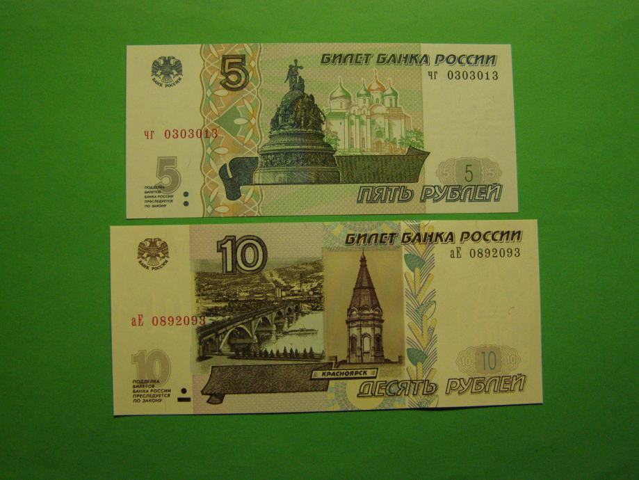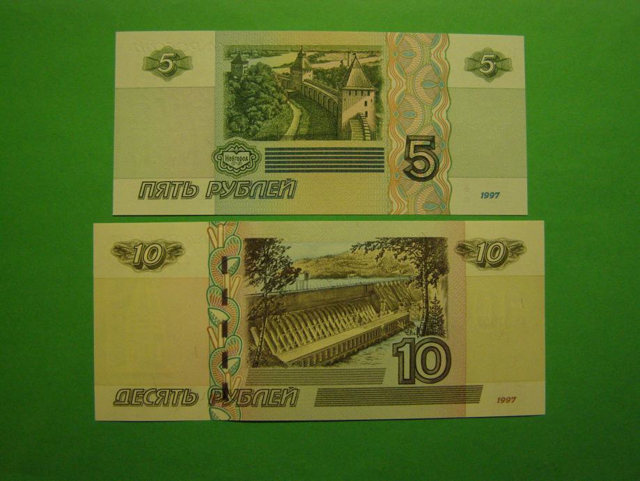 Prodam na NOVO natisnjena bankovca iz leta 1997 za 5 in 10 Rubljev iz Rusije (5 in 10 RUB), kot ju lahko vidite na fotografijah. Bankovca sta povsem nova - UNC kvalitete.