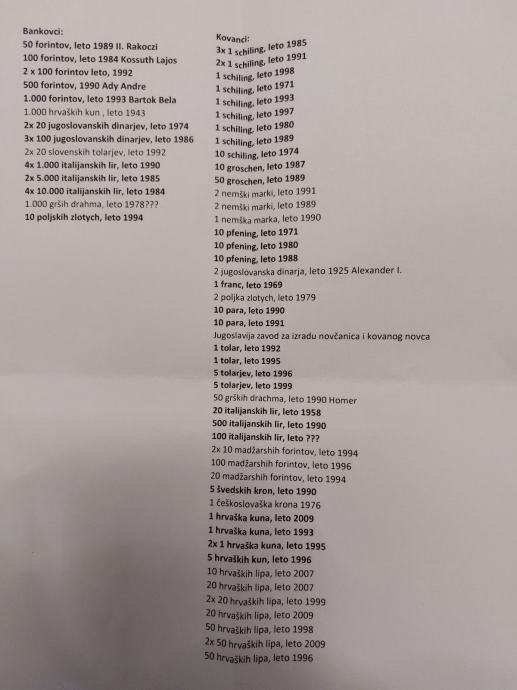 Prodam stare bankovce in kovance kot so jugoslovanski dinarji iz leta 1925, marke, lire... več informacij na 031 274040