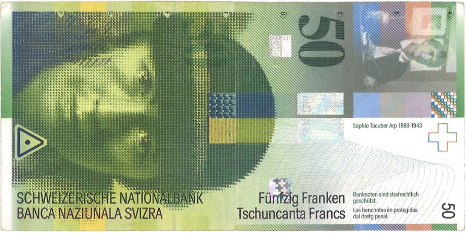 Prodam bankovec na fotografiji: Švica 50 frankov -SophieTaeuber-Arp