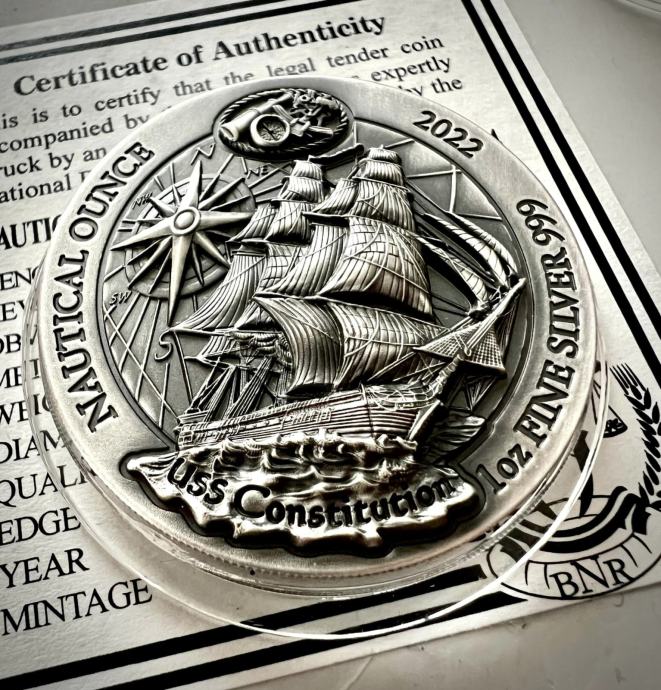 1 oz SREBRNIK 2022 Nautical USS CONSTITUTION ULTRA HIGH RELIEF (otaku)