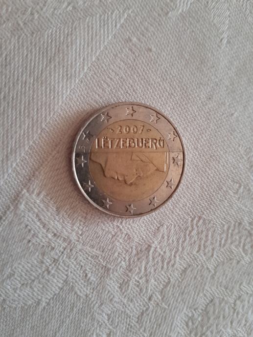 Prodam kovanec, ki je na fotografiji - 2€ Luksemburg 2007. Kovanec ima očitno kovno napako.