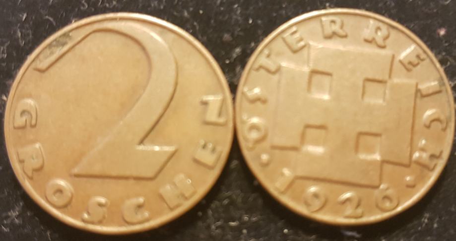 2 GROSCH-AVSTRIJA LETA 1926, 2 KOSA