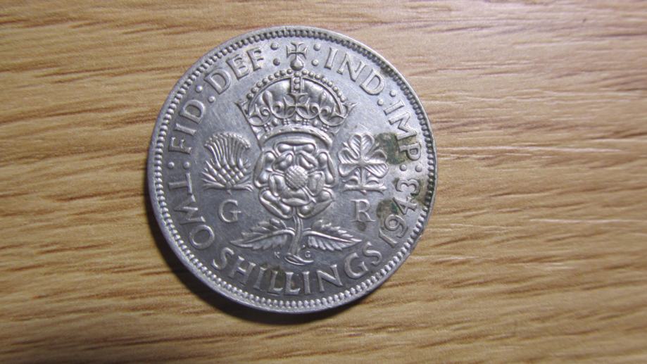 Prodam srebrnik 2 shillings 1943 V. Britanija