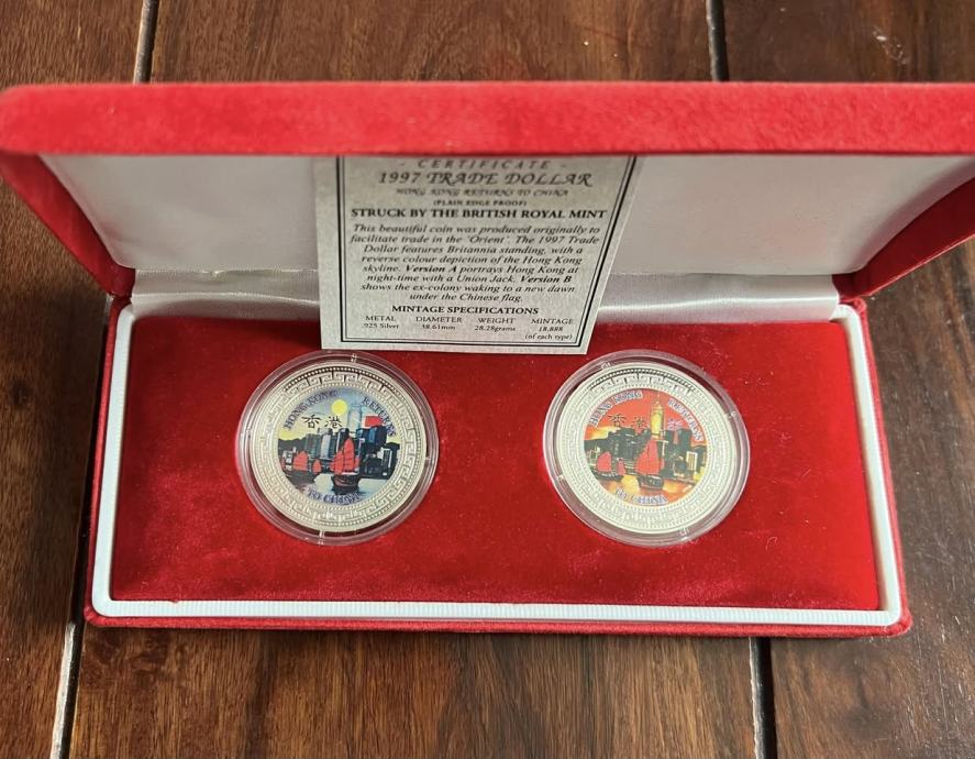 2x SREBRNIK PROOF SET TRADE DOLLAR HONG KONG TO CHINA 1997 (otaku)