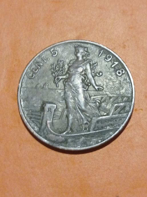 Prodam kovanec 5 centesimov 1918 , Italija. Dobro ohranjen XF