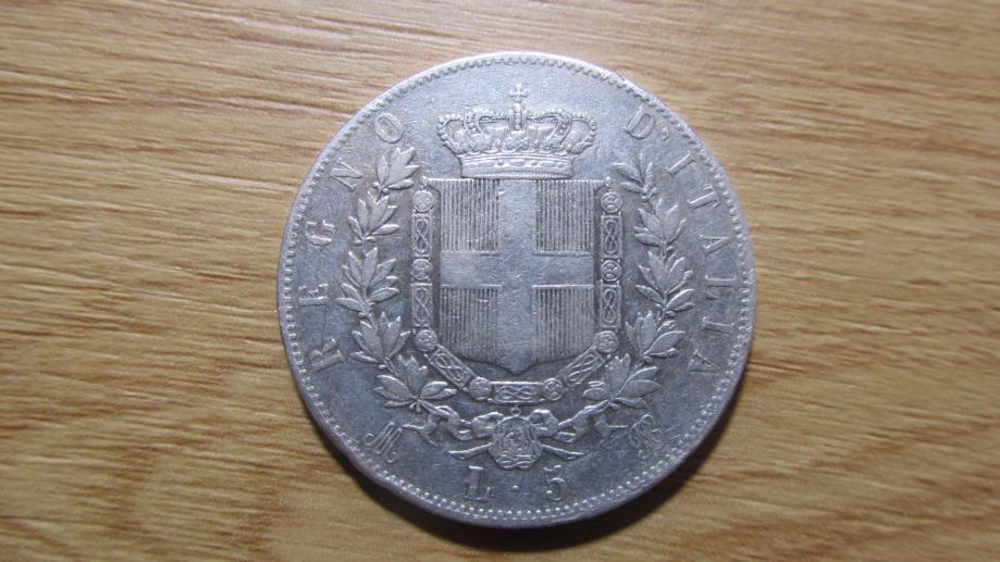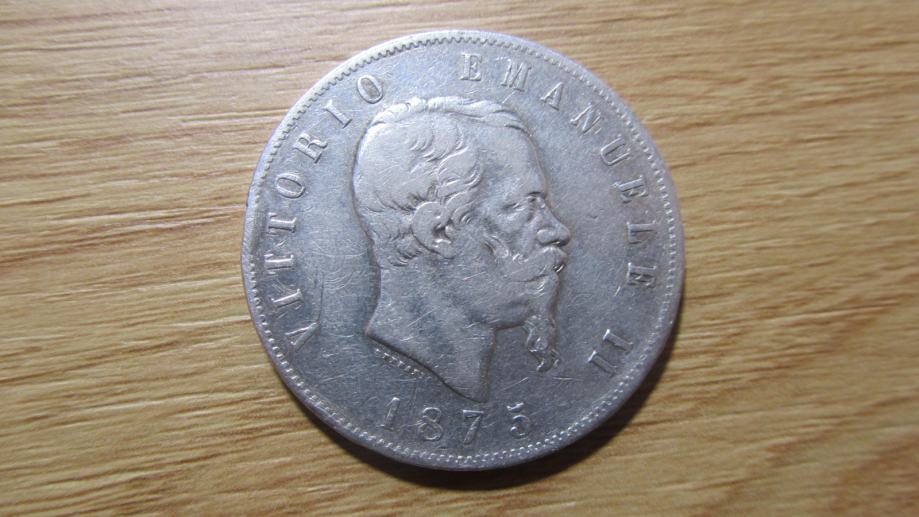 Prodam srebrnik 5 lire 1875 Italija