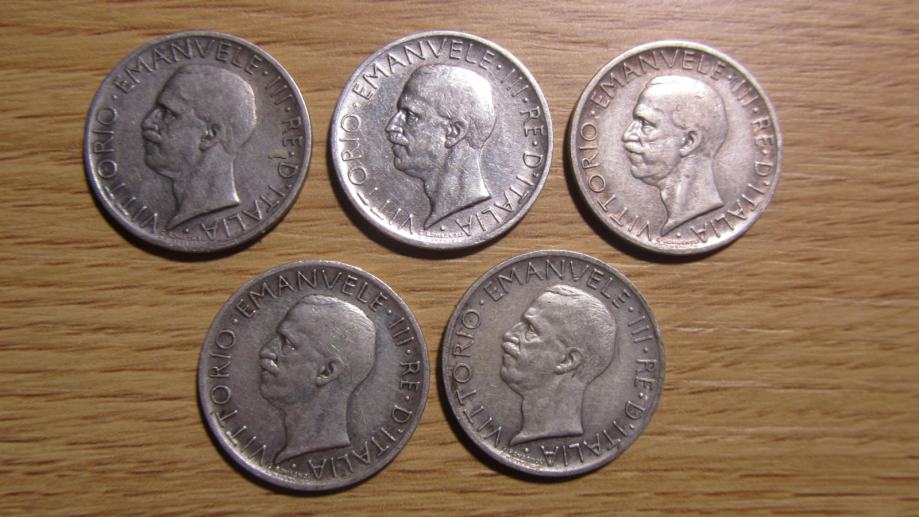 Prodam srebrnike 5 lire 1926, 27, 28, 29, 30 Italija