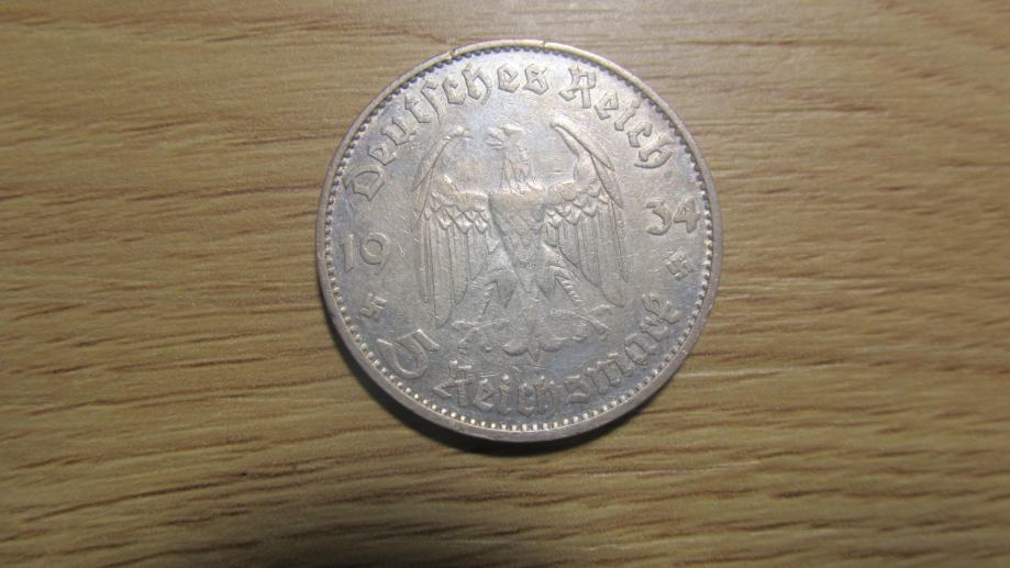 Prodam srebrnik 5 mark 1934 D Nemčija