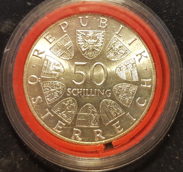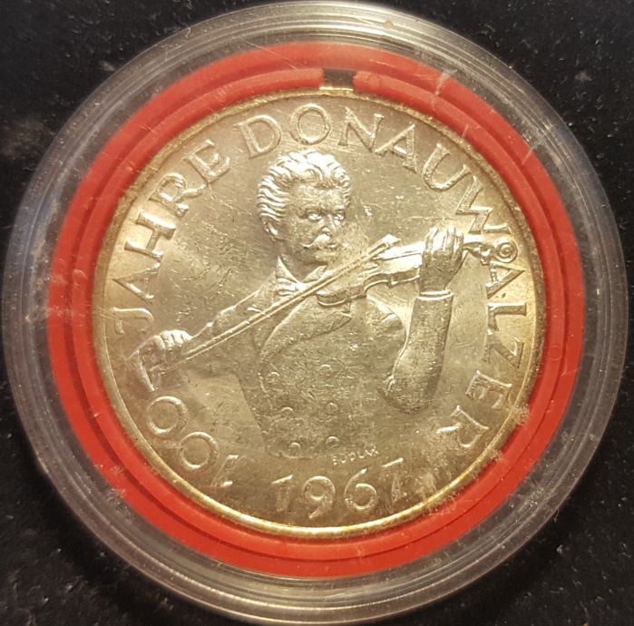 50 SCH. SPOMINSKI SREBRNIK OB 100. OBLETNICI DUNAJSKEGA VALČKA V ZAŠČITNI KAPSULI-UNC