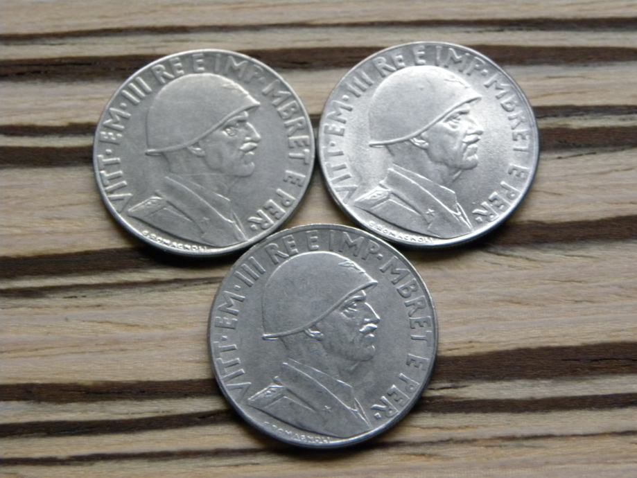Prodajajo se kovanci na sliki. Prvi levo je 4 eur, ostala dva sta po 5 eur za kos. Letnik 1940 je prodan.