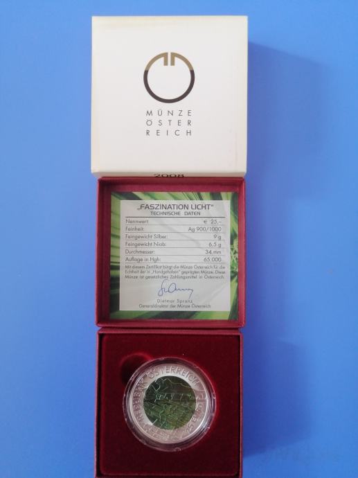 Naprodaj 13 srebrnikov Avstrija, Österreich, 25 evro NIOB od leta 2003 - 2015. Vsi v škatlici s certifikatom , letniku 2003 manjka zunanji beli karton.
