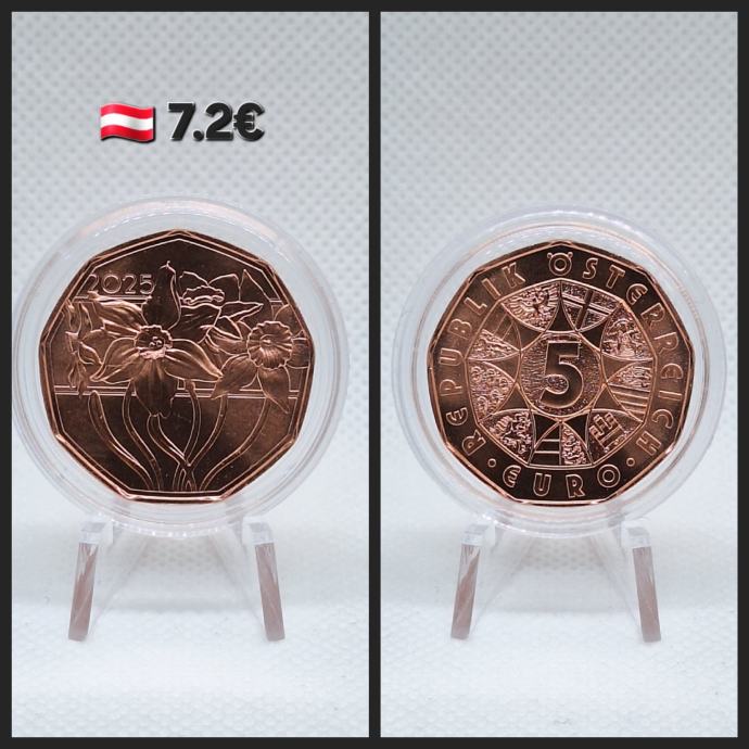 Avstrija 5 euro 2025 Narcisa bakren, v kapsuli je 7.5€