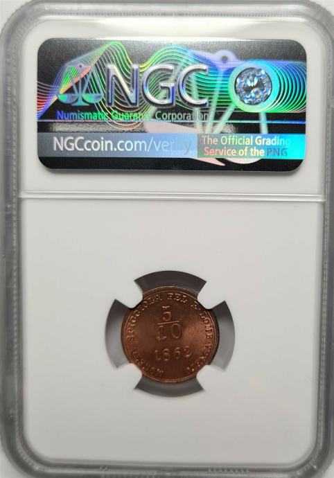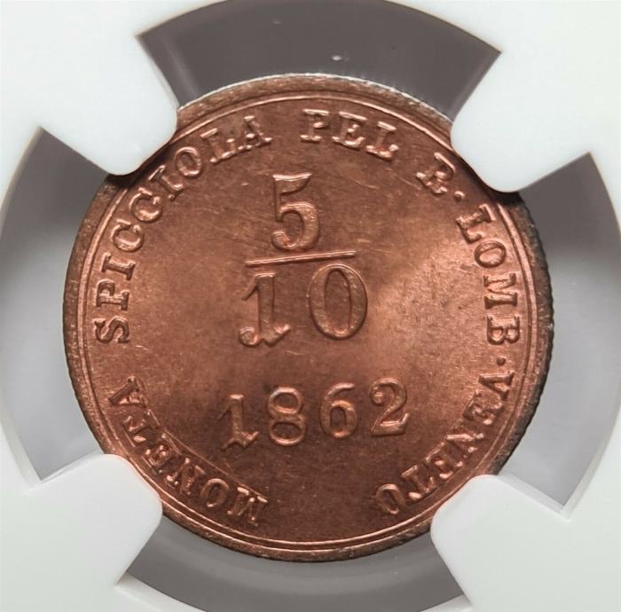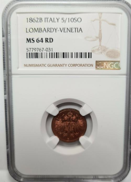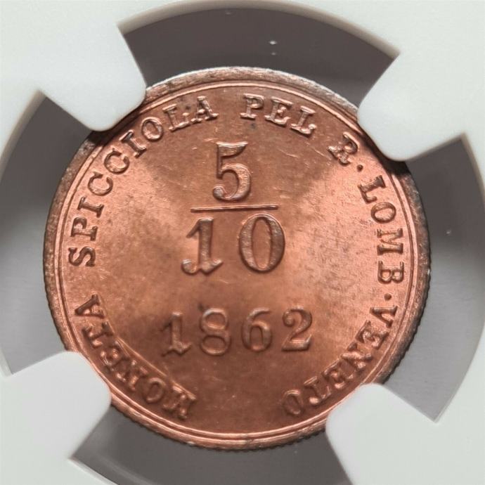 AVSTRIJA ITALIJA BENETKE Lombardija 5/10 Soldo 1862 B NGC MS64 UNC