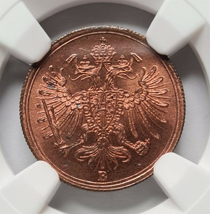 Odlično ohranjen kovanec v polnem kovnem sijaju. Certificiran NGC MS RB.