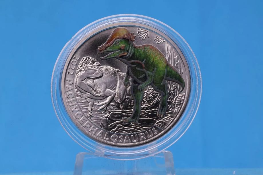 Iz lastne zbirke se prodaja avstrijski kovanec iz serije Dinozavri - Pachycephalosaurus . Motiv na kovancu v temi postane svetleč.