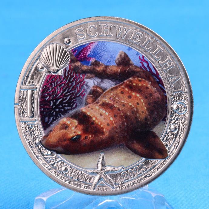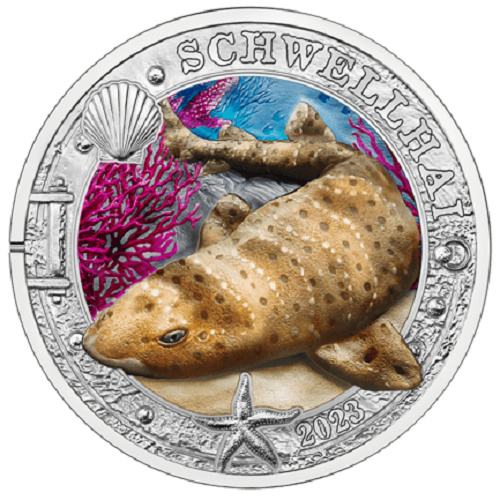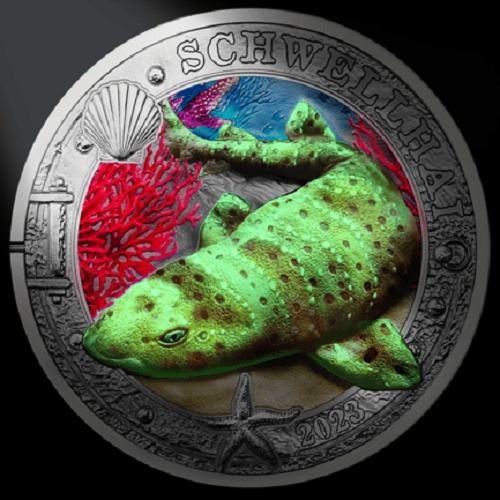Iz lastne zbirke se prodaja avstrijski kovanec iz serije Luminous Marine Life - SWELL SHARK. Motiv na kovancu v temi postane svetleč.
