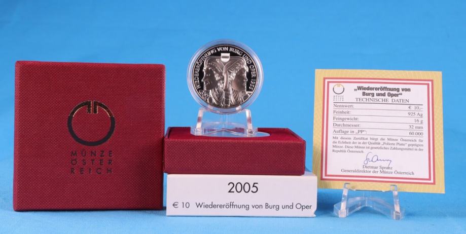 Iz lastne zbirke se prodaja avstrijski srebrnik Re-opening of Burgtheater and Opera.