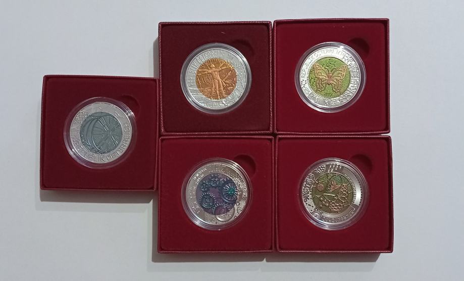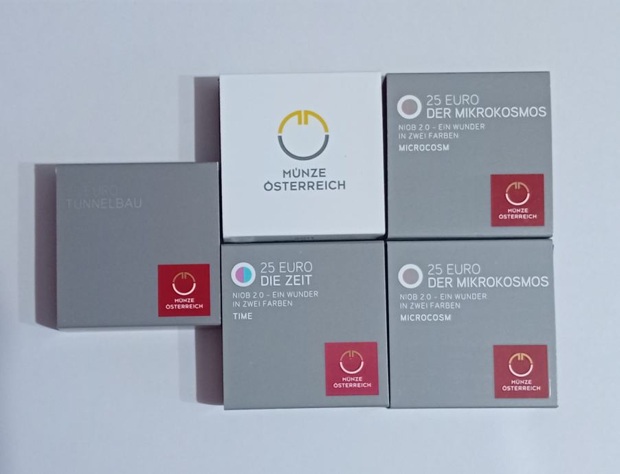 Iz lastne zbirke se prodaja 5 avstrijskih srebrnikov iz serije NIOB. 2x Mikrokozmos, 1x Čas, 1x Robotik, 1x Tunel.