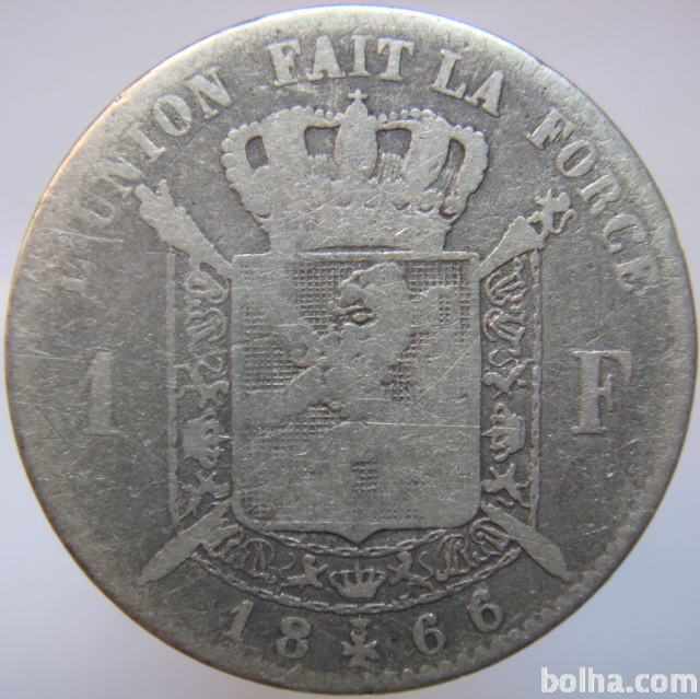 Belgija 1 Franc 1866 VG b - Srebro