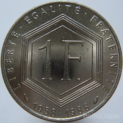 LaZooRo: Francija 1 Franc 1988 XF / UNC De Gaulle