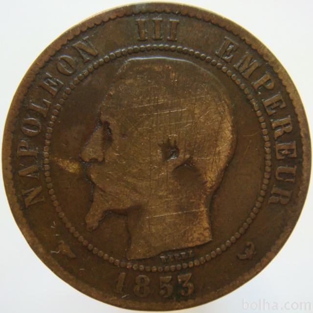 Francija 10 Centimes 1853 Lille obisk borzi zelo redek
