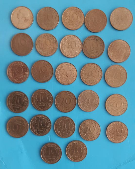 10 Centimes: 1963, 1964, 1967, 1968, 1969, 1970, 1971, 1973, 1974, 1975, 1977, 1978, 1979, 1980, 1981, 1982, 1983, 1984, 1985, 1986, 1987, 1988, 1990, 1992, 1994, 1996, 1997.