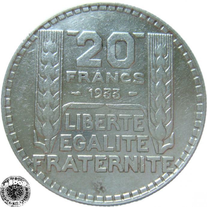 Francija 20 Francs 1933 XF - Srebro