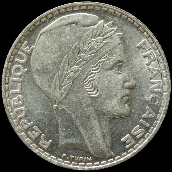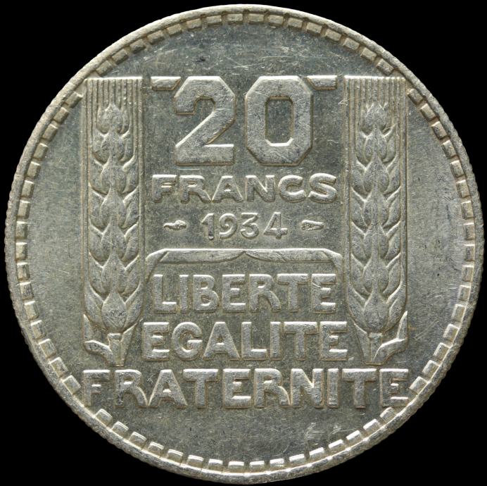 Francija 20 Francs 1934 XF/UNC a - Srebro