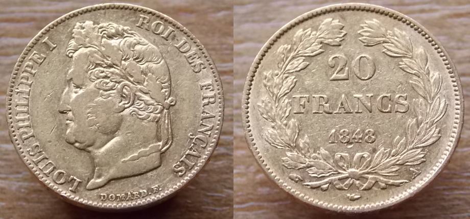 20 Francs 1848 A (kovnica Pariz), ohranjenost VF cena 745eur