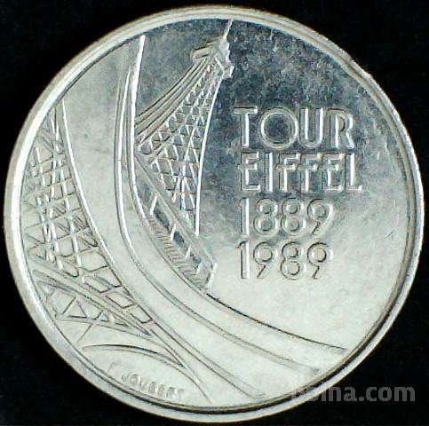 Francija 5 Frankov 1989 XF/UNC Eiffel b