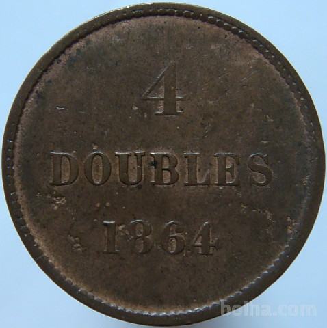 Guernsey 4 Doubles 1864 VF