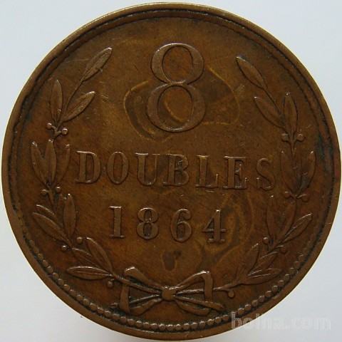 Guernsey 8 Doubles 1864 VF/XF redkejši