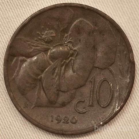 Ugodno prodam kovanec Italije za 10 centesimov letnice 1920. Kvaliteta zelo lep do odličen (VF/XF). Cena je 4,0 EUR. Kovanec je na sliki.